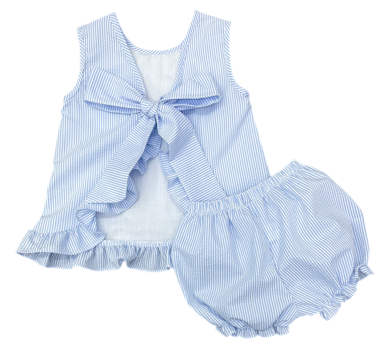 Mae Bloomer Set - Blue Seersucker