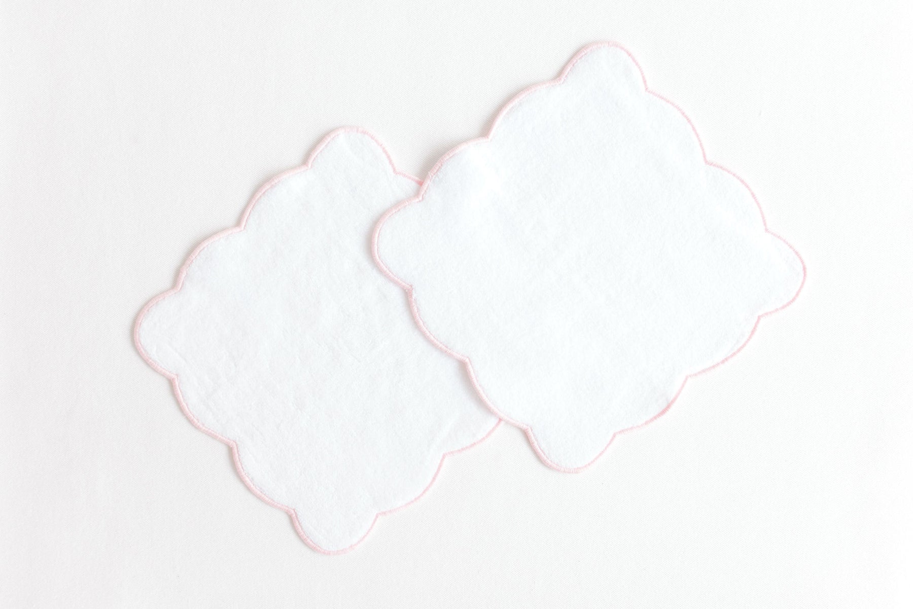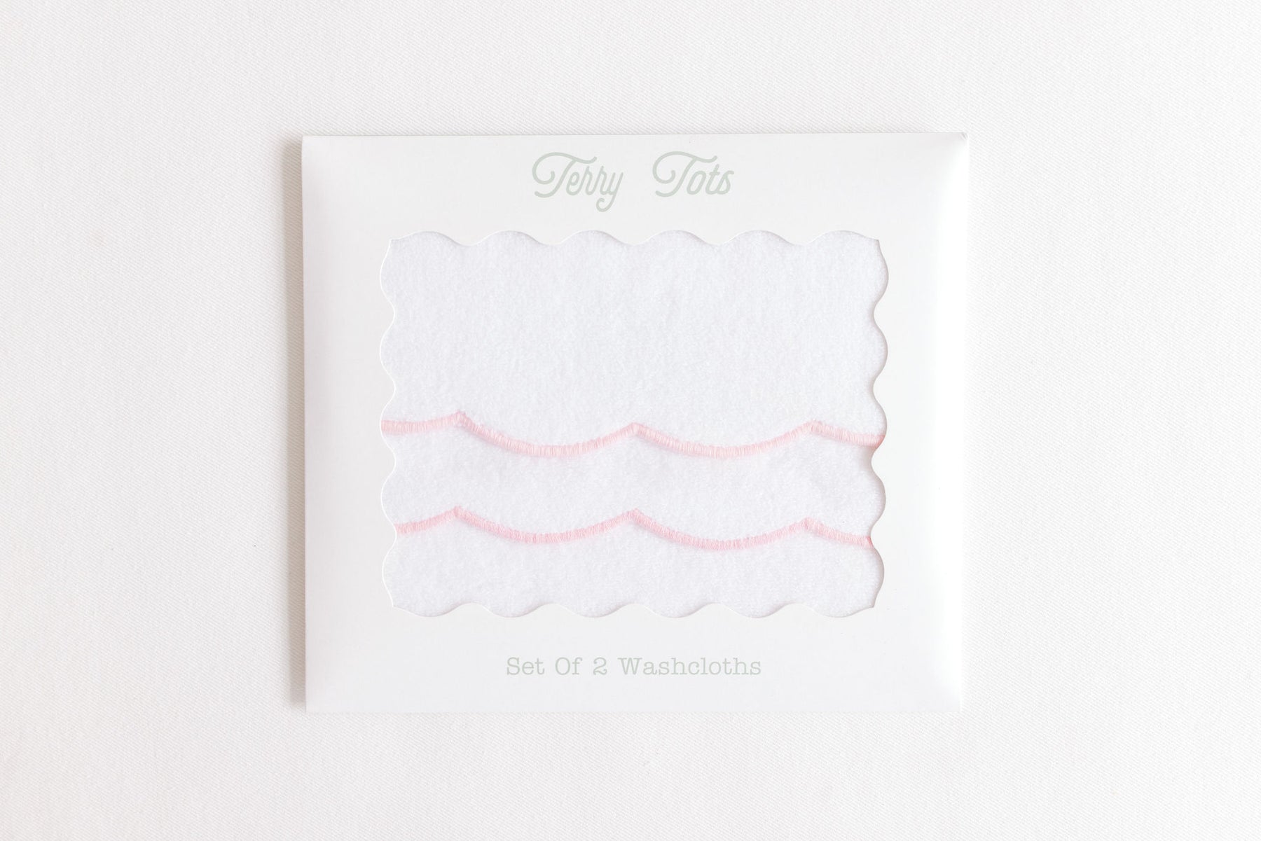 Wash Cloth Set - Pink Stripe Scalloped Edge